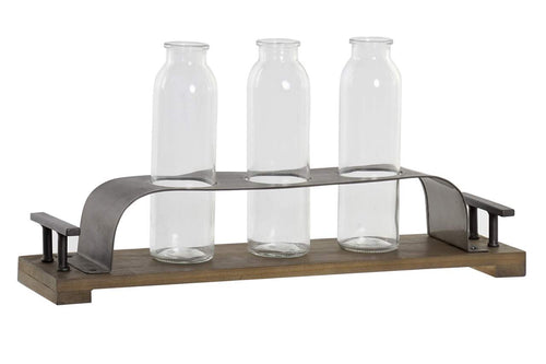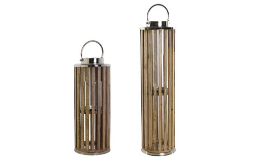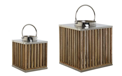 Porta Velas Quadrado em Madeira Metal e Vidro