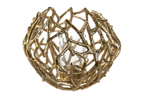 Porta Velas Redondo Galhos Dourado em Aluminio