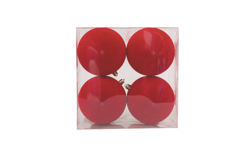 Caixa de 4 Bolas 10cm Vermelhas em Veludo